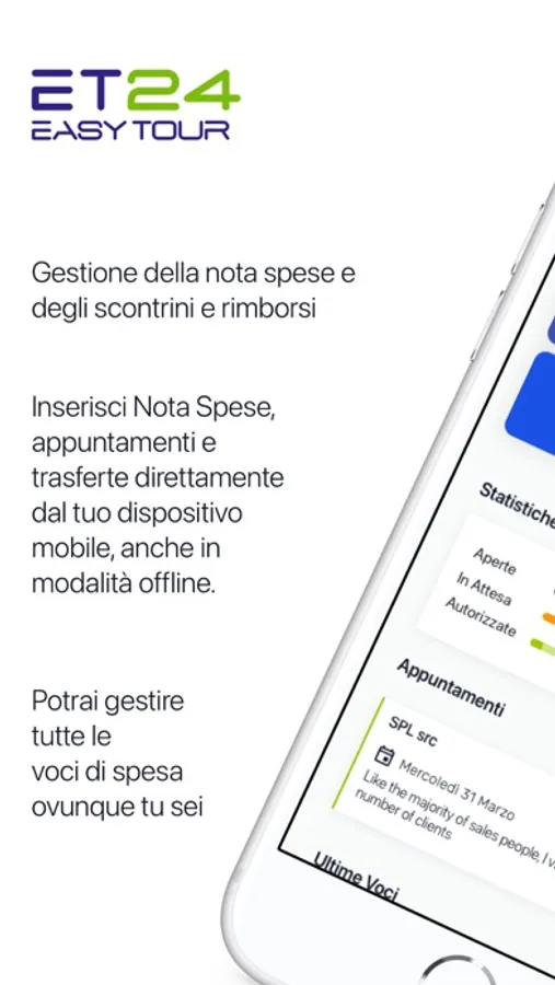 Tramite l’app Easy Tour 24 potrai gestire la Nota Spese, appuntamenti e trasferte direttamente dal tuo dispositivo mobile, anche in modalità offline.