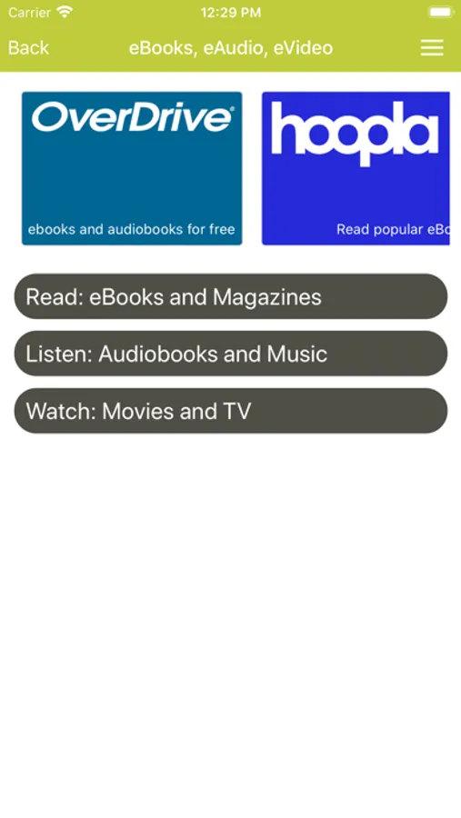 You can also easily access our electronic resources - Overdrive/Libby, Hoopla, Kanopy, Tumblebooks, and much more. Some ebooks can be read directly from your device.
