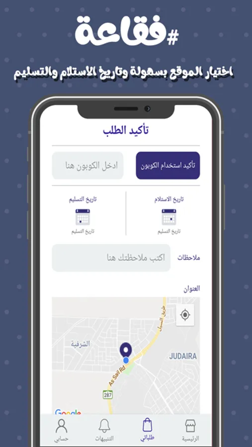 بإمكانكم في تطبيق فقاعة غسيل تحديد موقع لاستلام طلبياتكم