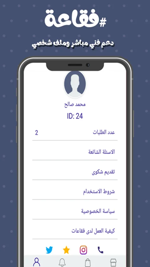 دعم فني مباشر في تطبيق وفي شبكة التواصل الاجتماعي