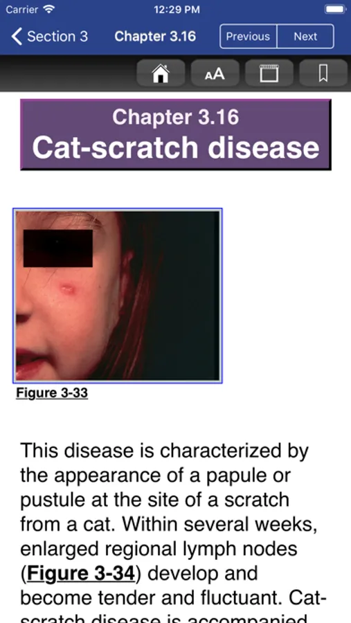 This app is easy to navigate, allowing you to browse the contents or search for topics. The search tool shows you suggestions that appear in the text as you type so it is quick and helps with spelling medical terms. It also remembers past search terms so you can go back to a topic or image very easily. You can also create notes and bookmarks for chapters to enhance your learning. You can also change the text size for easier reading.