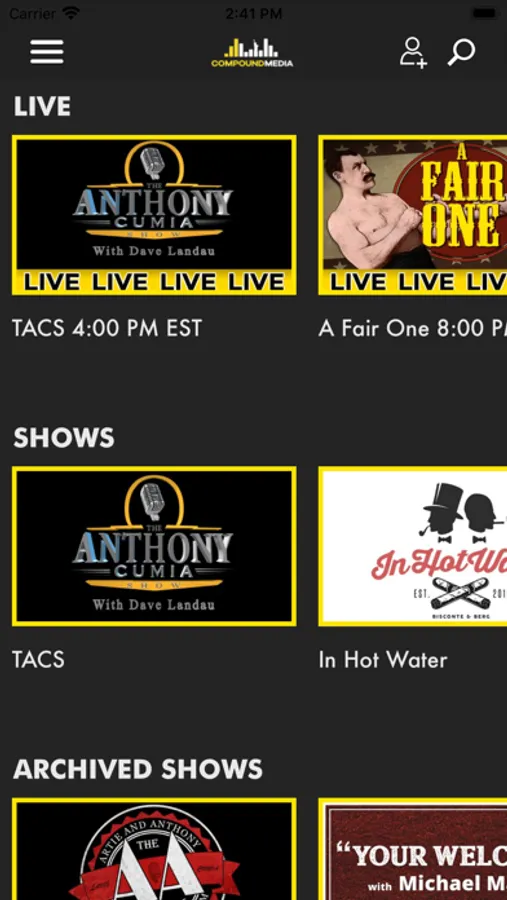 Compound Media is a subscription-based on-demand streaming media platform that broadcasts live American audio and video podcasts. We offer multiple live broadcasts a day with even more content on demand.