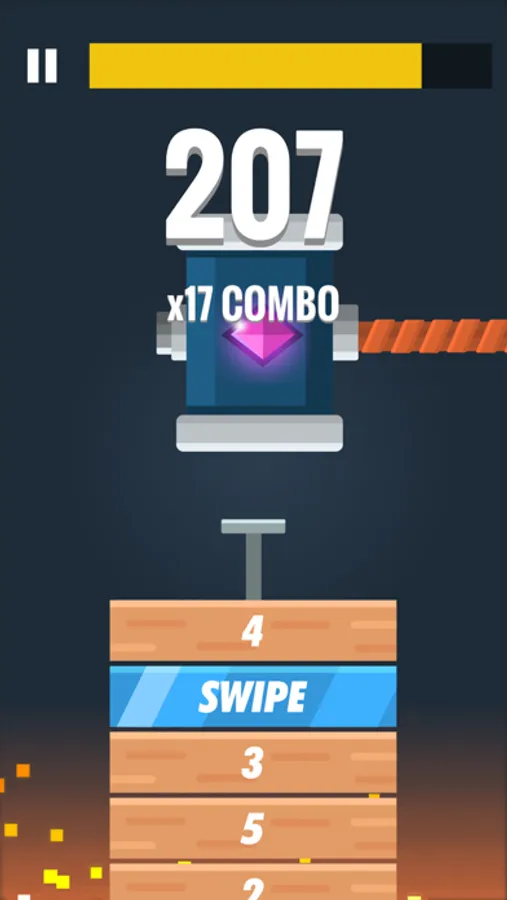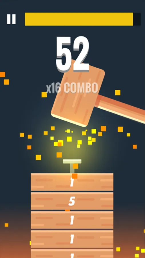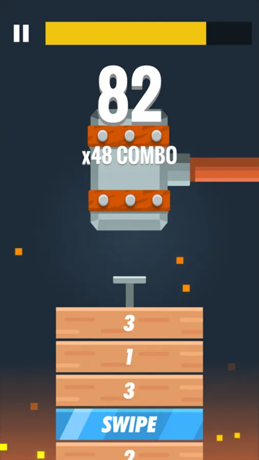 Smash the nail through the stack! Tap to remove the wooden blocks and swipe to remove the glass block.