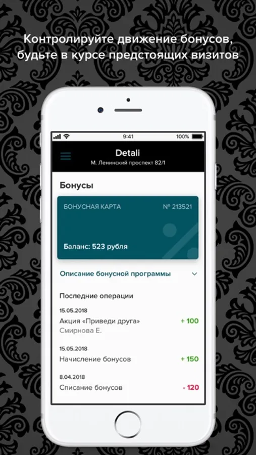 - Личный кабинет с историей всех предыдущих и будущих визитов, а также любимых услуг