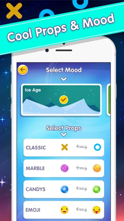 On the other hand, attractive graphics and soothing sound will make sure that you can play for hours without even checking the time. Not just O and X, but you can play with Candies, Marbles and even Emojis.