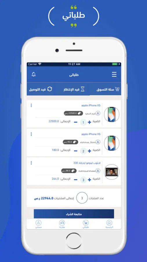 - إضافة منتجات لسلة الشراء كما يمكنك حذفها أو تعديل الكمية في أي وقت