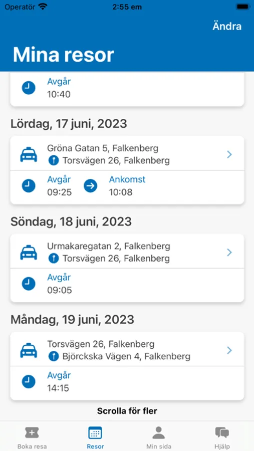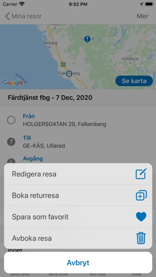 Med appen får du bra översikt över dina bokningar av olika typer av serviceresor. Du kan boka din färdtjänst själv via appen. Du kan även se och avboka förbokad färdtjänst, skolskjuts, sjukresa samt närtrafik. Har du ombud lägger du enkelt till de ombud som du vill ska kunna boka/hantera dina resor åt dig. Du kan vara ombud till en eller flera resenärer och hantera deras resor på motsvarande sätt.