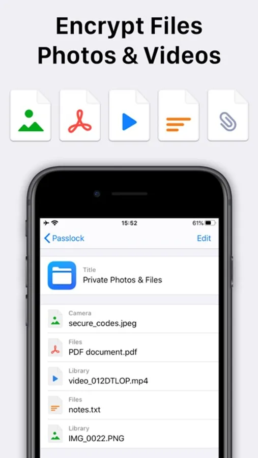 - Store your Files, Credit Cards, Photos, Documents and Secure Notes