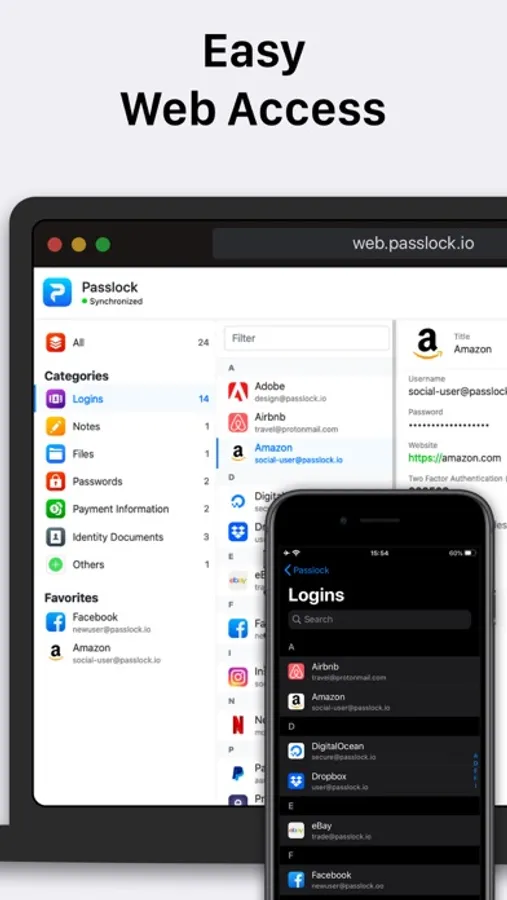 Passlock is a password manager that securely stores your passwords and personal information in a secure vault. All you have to do is remember your Master Password after let Passlock do the rest.