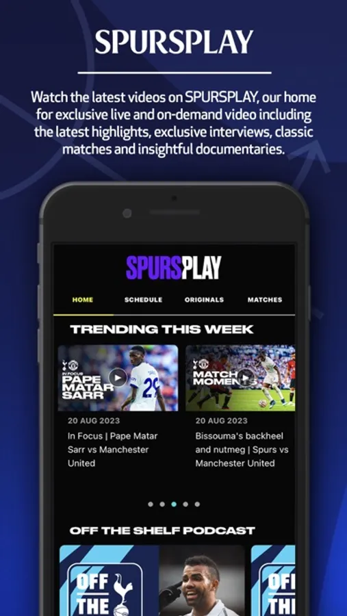 Watch the latest videos on SPURSPLAY, our home for exclusive live and on-demand video including the latest highlights, exclusive interviews, classic matches, and insightful documentaries. Here you can see: