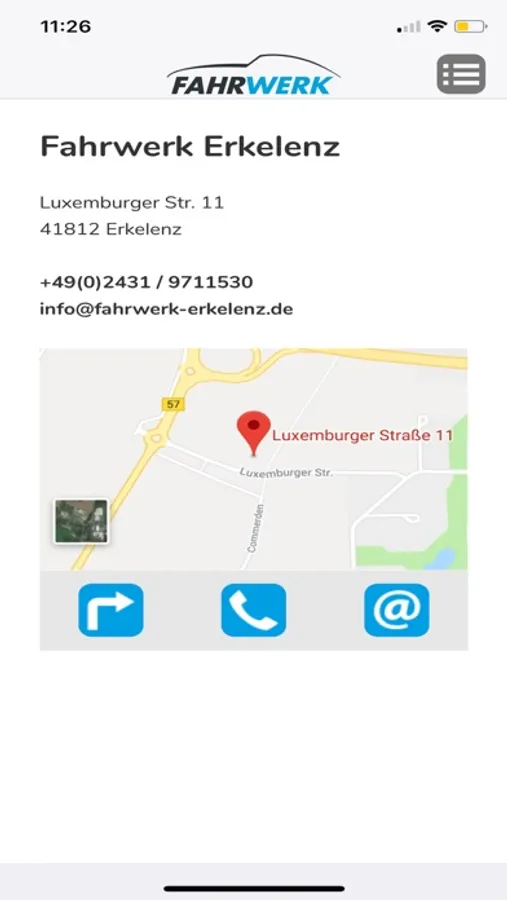 Die App informiert Sie über das Fahrwerk, die Öffnungszeiten und zukünftig Ihre Kunden- und Fahrzeugdaten.