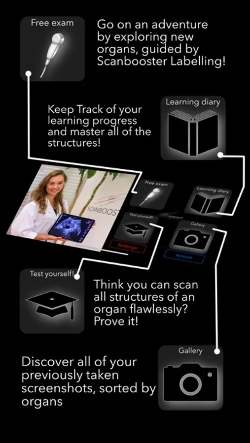 Start learning sonography today! Many different cases and pathologies. An ever expanding library of new patients for you to practice with. Learn the correct ultrasound probe movements with our scan tutorial. Revise anatomy with our labeling: It shows all important structures colored - for maximum clarity during scanning. We are the world's first realistic ultrasound simulator app. Scanbooster allows sonographers, medical doctors, students, and nurses to learn sonography with ease. Scanbooster puts a professor, a high-end ultrasound machine and many patients on your iPhone. It SIMULATES sonographic examinations with maximum realism.