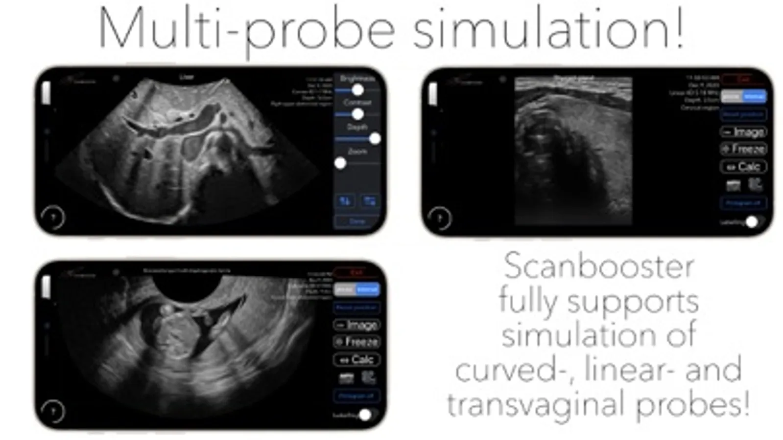 -Learn the difference between different ultrasound probes: We have included linear probes, curved probes and even intravaginal/intracavital probes in Scanbooster.