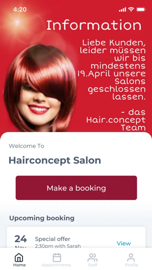 The Hairconcept Salon app makes booking your appointments and managing your loyalty points even easier. You're just a few taps away from feeling good and looking great!