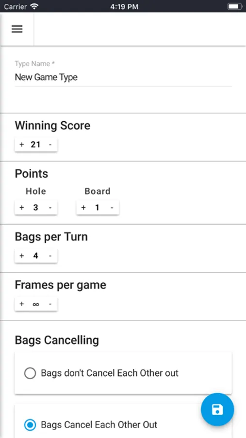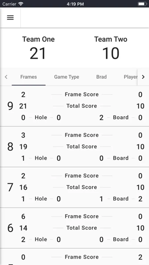 Easily track your score and see your history and stats for Cornhole and Bags games. Easy to create different variations for different style games!