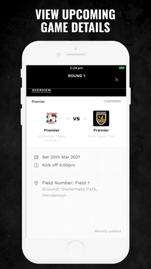 * See the latest information about upcoming fixtures including; venue address, field number, and kick-off time.