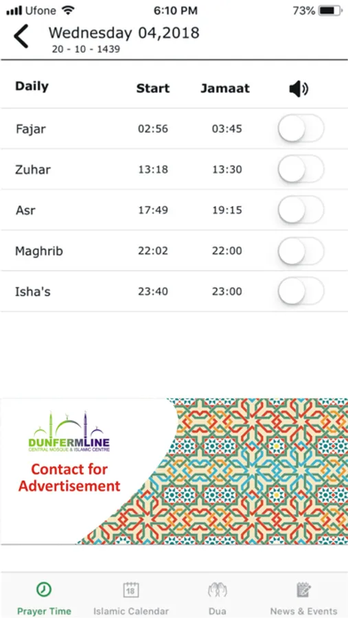 This feature is unique in the sense that you no longer need to choose a calculation method nor start adjusting times to fit your locality as with other Apps on the market – the prayer times have been uploaded directly from the mosque. .