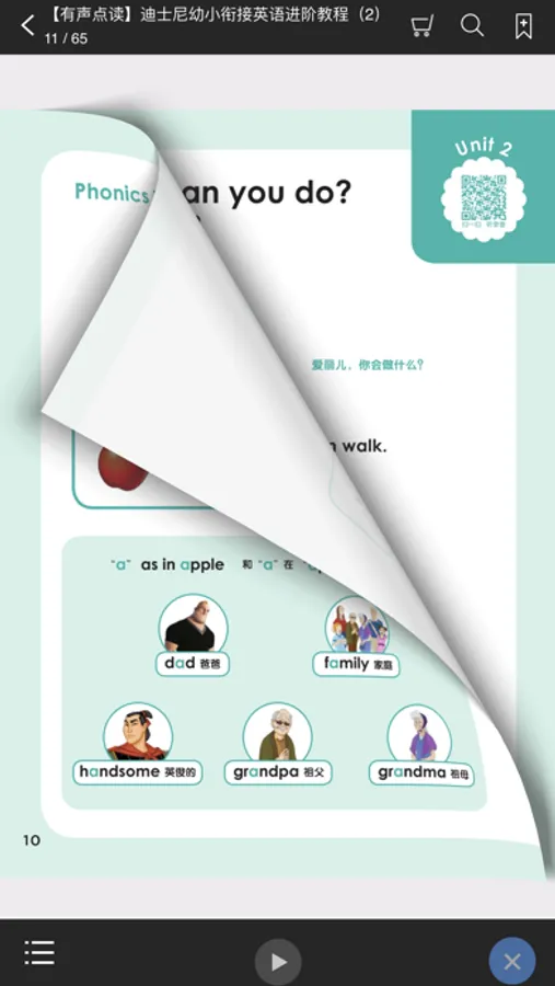《花梨亲子英语》这一应用是一款英语启蒙立体化解决方案,用户在应用中不仅阅读读书,完成练习,可以看动画、听音频、唱儿歌,是一套英语启蒙+幼小衔接教材,由美国语言专家专为中国学前儿童学习英语设计,适用于家教辅导和培训机构。各级教程各含6大学习主题,12组情景对话,18个教学视频,120高频词汇。采用三级进阶制,帮助孩子英语水平层层提高。特色在于书中有大量孩子们喜闻乐见的迪士尼形象,同时有外教朗读音频、单词/会话教学视频、主题儿歌视频,全部配音和表演均由母语为英语的专业人士完成,趣味十足,方法有效,全面激发幼儿英语学习潜能。适合零基础英语学习者、3~6的儿童和小学低年级的小朋友使用。