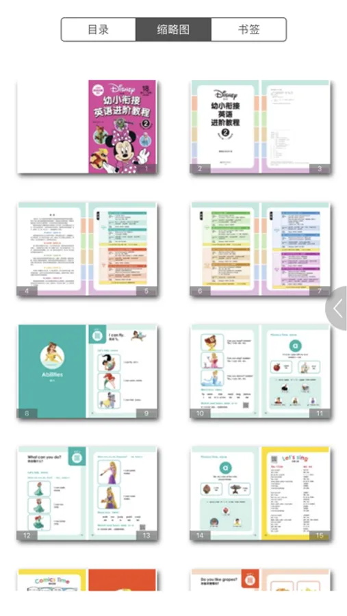 涵盖丰富的迪士尼人物形象,18大学习主题,36组情景对话,54个教学视频,360高频词汇,还有外教朗读音频、单词/会话教学视频、主题儿歌视频。,全部配音和表演均由母语为英语的专业人士完成,趣味十足,方法有效,全面激发幼儿英语学习潜能。