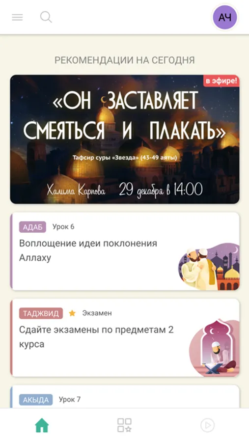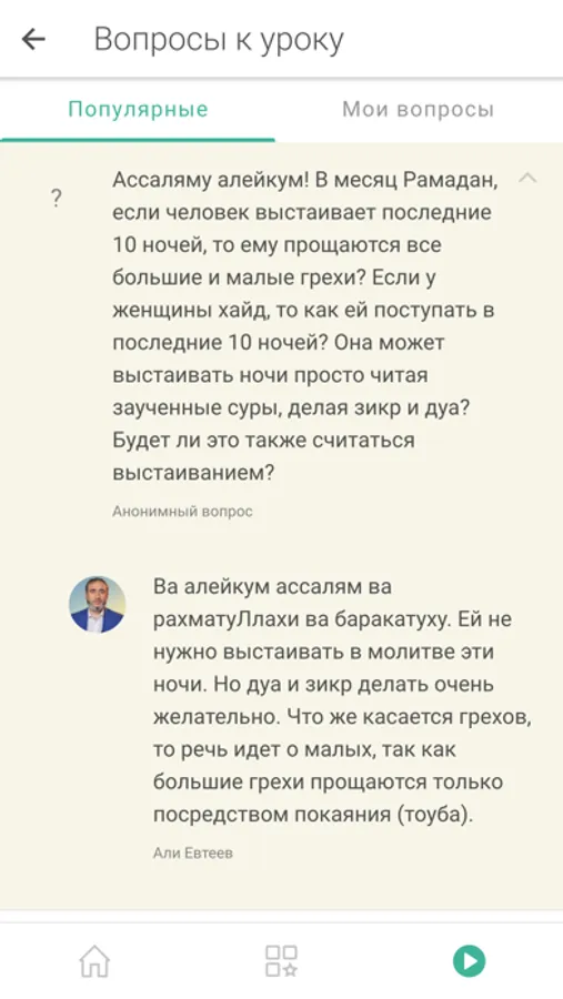 Возникли вопросы по урокам? Задайте их преподавателю и получите ответ! Кроме этого, в Академии регулярно проводятся практические занятия по чтению Корана и открытые вебинары, работает онлайн-служба поддержки.