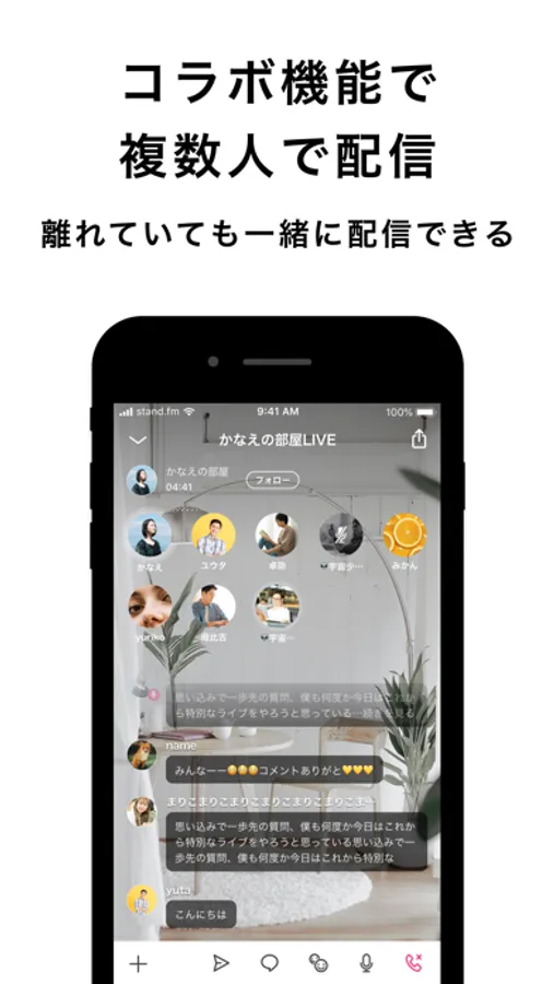 相手もstand.fmのアプリをダウンロードしていれば、複数人での会話をライブや収録で配信することができます。