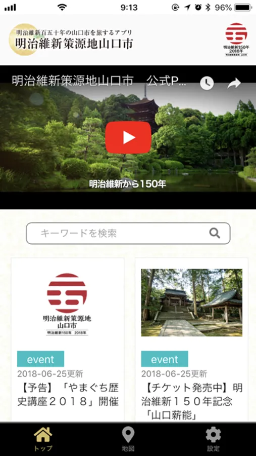 「明治維新150年の山口市を旅するアプリ」は、明治維新の策源地となった山口市を旅するすべての方をサポートするために作られたアプリです。