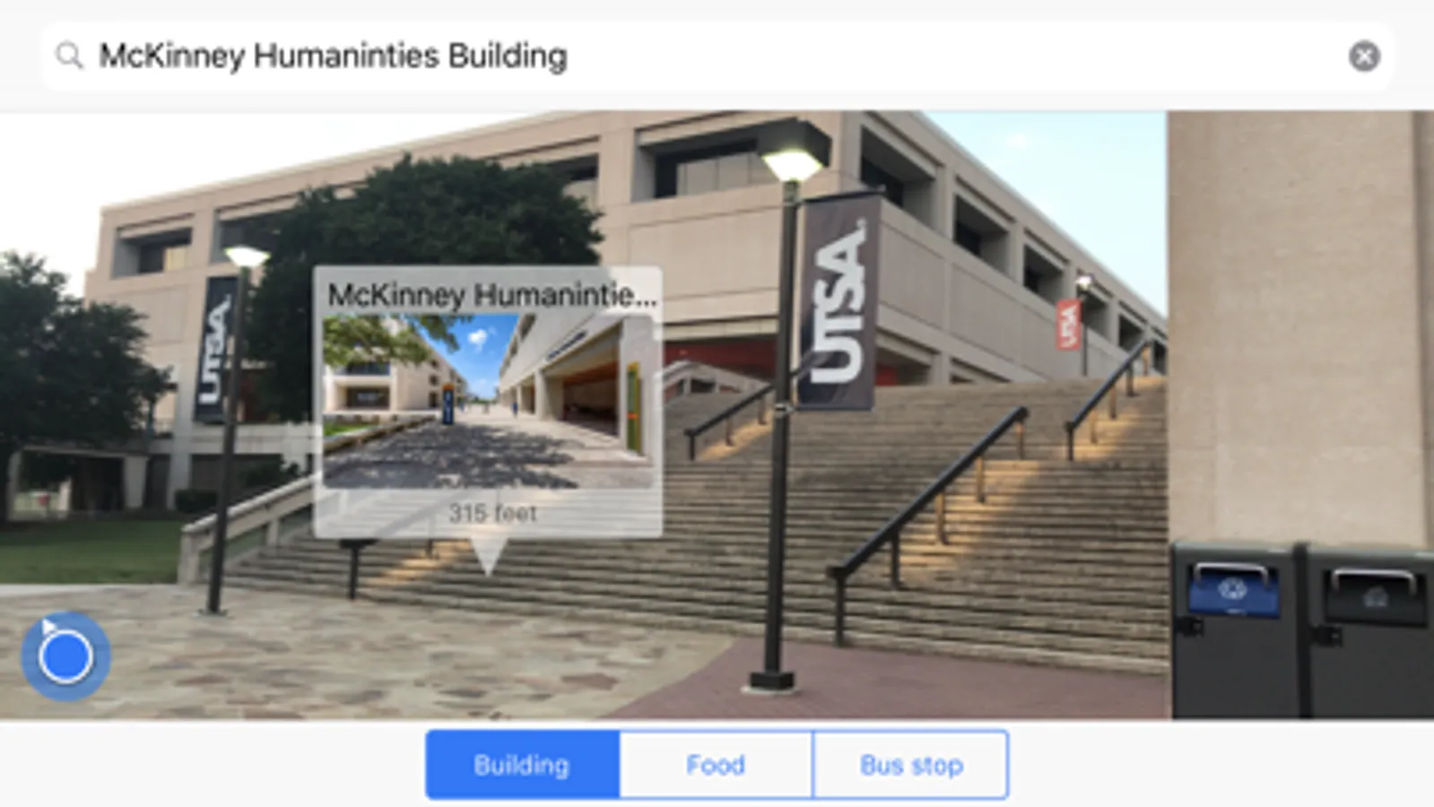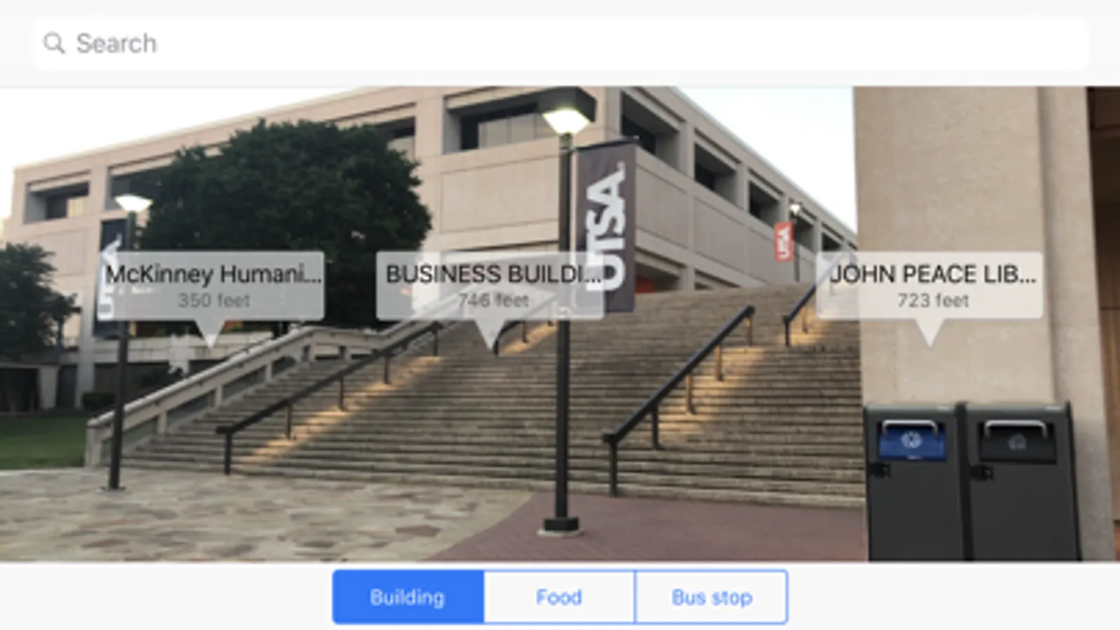 This Augmented Reality app lets you find Buildings, Restaurants, and Bus Stops on most University Campus or Theme Park in the U.S. Use the camera on your mobile phone or iPad to find your way around campus. Use the search bar to narrow down your search and the amount of popups on the screen. Buildings will only appear once you are on the campus itself.