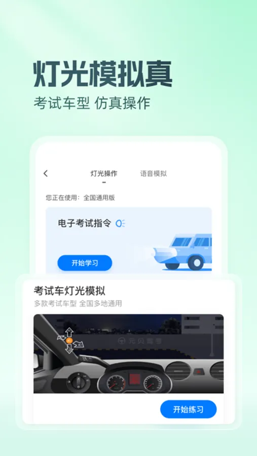 提供30余款热门训练车型的灯光操作模拟,真实还原各车型灯光操作,提前熟悉和模拟操作,考试快人一步。