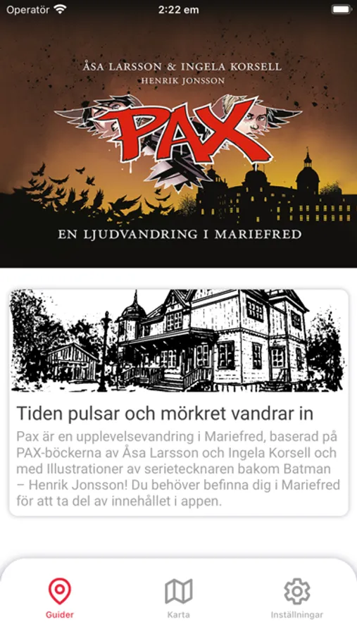 Korsell och med illustrationer av serietecknaren bakom Batman – Henrik Jonsson! Du behöver befinna dig i Mariefred för att ta del av innehållet i appen.