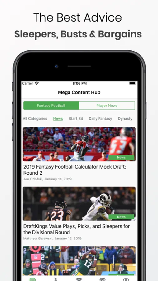 Our analysts write unique daily articles and content to help boost your draft knowledge. We will help you find sleepers, bargains and busts.