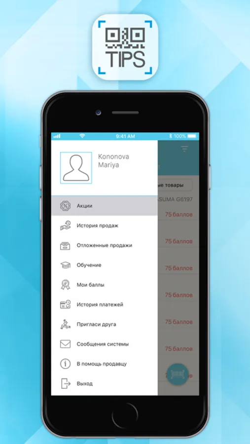 Mobile application made for salesman to register each sold product and get bonus points. Using the application the salesman scans the barcode and QR code on each sold product, takes a picture of the receipt and, after the moderation (audit), receives a reward to his account in the system.