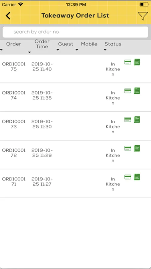 User can take dine in order, delivery order & Takeaway order. On taking new order item details are printed on kitchen printer.