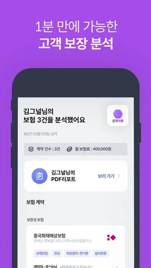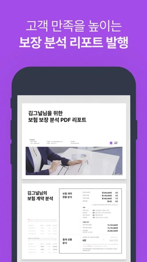 고객 입장에서 분석한 리포트로 보험의 필요성을 환기할 수 있습니다.