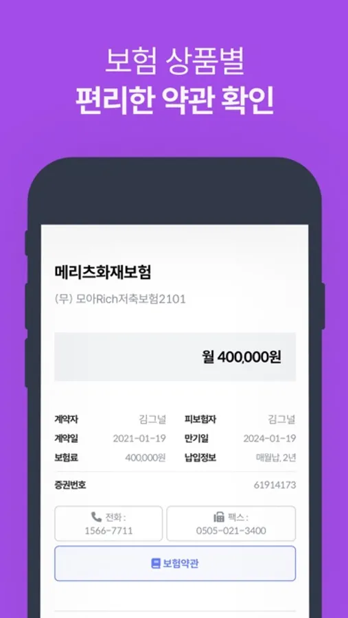고객의 보험 약관을 찾을 때까지 기다릴 필요 없이 바로 확인 가능합니다.