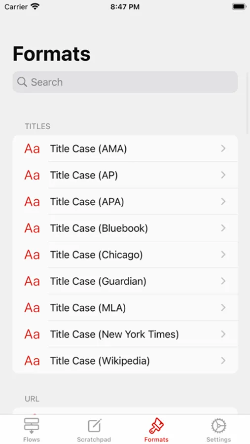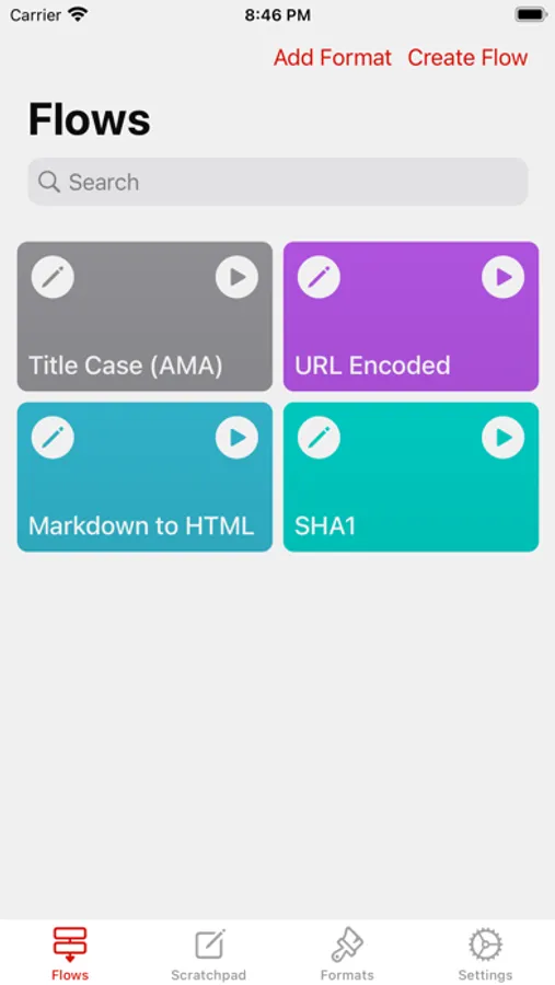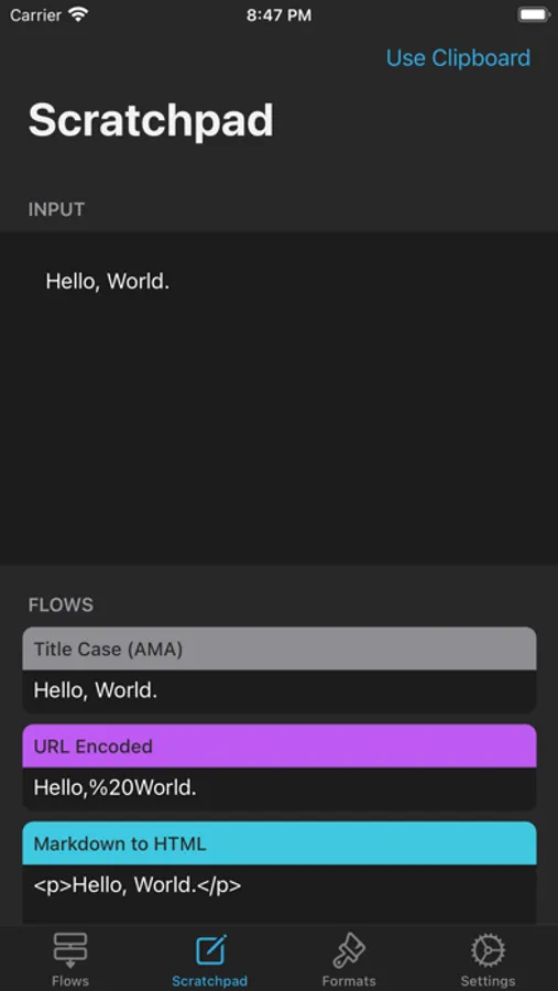 There's over 60 text formats to choose from in the app, from simple ones such as Base64 encoding, to fun ones such as Mocking SpongeBob or Clap Case, various Markdown formats, and even some more complex formats which allow customisation such as replacing all occurrences of a string, or adding a prefix/suffix.