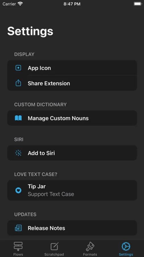 Text Case is a text transformation utility, that can be as powerful as you make it, and accessible throughout iOS.