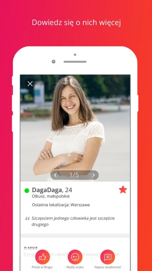 Select your search criteria, thereby specifying which men and women you are looking for. Regardless of whether you are just looking for new friendships or you want to arrange serious dates and soon you can join him a group of lovers happily in love - the application is the place just for you. At Sympatia.pl, flirting is really simple, meeting new people has never been so pleasant.