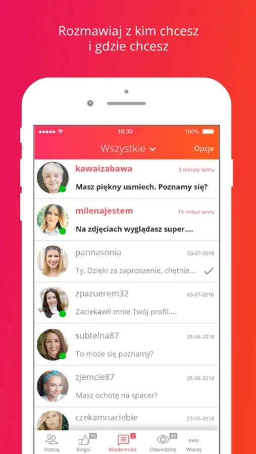 Sympatia's dating application has a notification function that will give you a signal that someone has drawn attention to you and contacted you via messenger. Thanks to this, you can use the free dating application Sympatia.pl anywhere, anytime. Flirt is possible wherever you want.