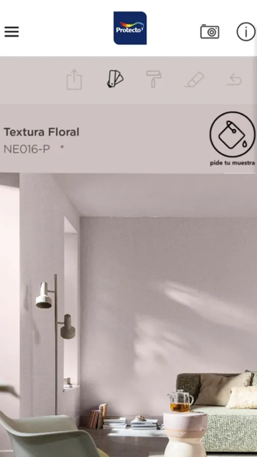 Esta es la nueva aplicación de Protecto® que te permite pintar y decorar tus ambientes con los colores que más te gustan. Tan solo busca el espacio de tu casa que quieres pintar, tómale una foto, y en un solo paso podrás apreciar cómo se verá con los colores que escojas. Ya no es necesario pasar horas imaginando si los muebles o accesorios decorativos de tu casa se ven bien con tus colores preferidos, con la app de Protecto® lo puedes ver antes de pintar con cualquier color. Además, si buscas asesoría para renovar tu hogar, podrás encontrar las últimas tendencias de colores, calcular la cantidad de pintura que necesitas, ubicar tu tienda Protecto® más cercana y combinaciones que van con tus colores preferidos. Una vez encuentres los colores ideales para pintar, podrás guardarlos como favoritos y compartir lo que desees en redes sociales. Con la app de Protecto®, ahora todo es más fácil!