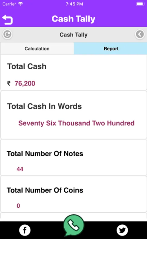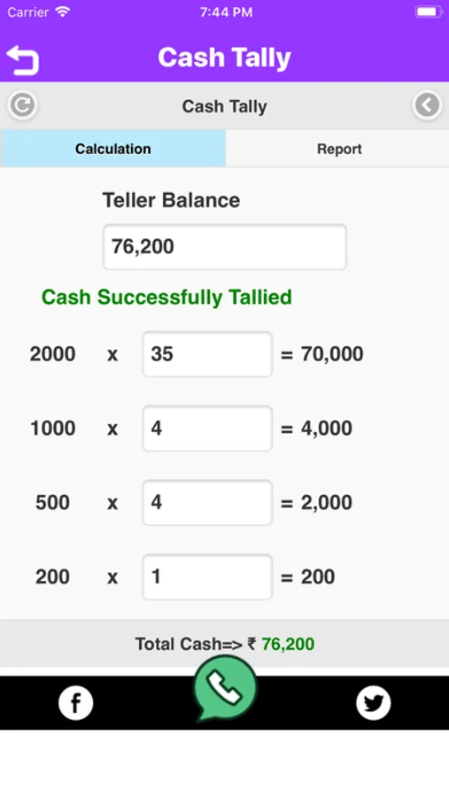You work as a cashier in a bank or any other financial institution? Do you still use calculator to tally your cash? That is very old fashioned and too much typing, don't you think? Presenting Tally My Cash - an app, developed exclusively for Indian currency notes, to help you tally, save, modify your cash denomination calculations easily, quickly. Just enter note denominations and let this app handle the rest.