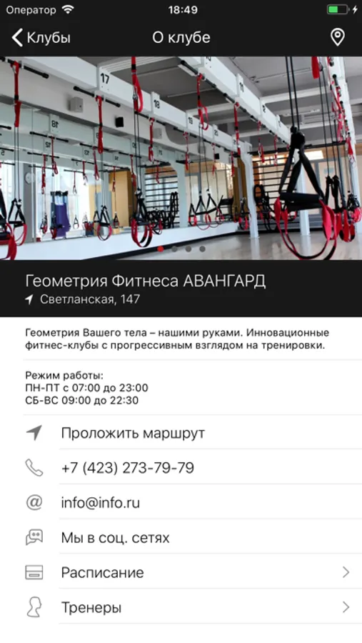 Приложение для членов сети фитнес-клубов Геометрия Фитнеса и всех тех, кто планирует ими стать.