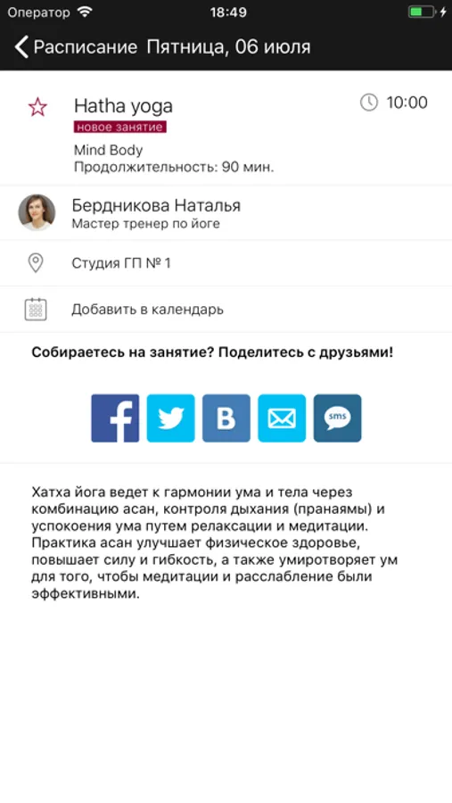 - следить за расписанием групповых занятий,