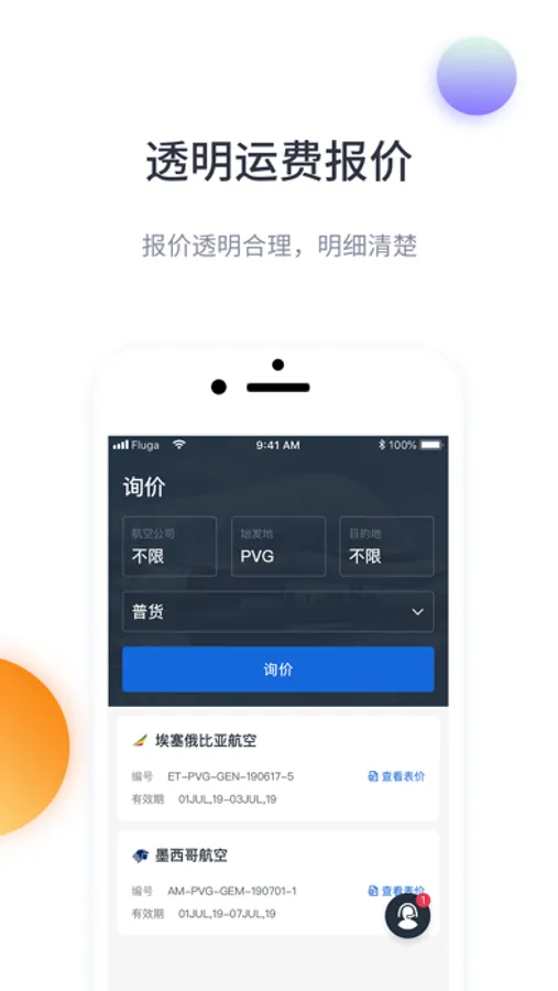 飞鲸专注于国内、国际航空运输,拥有全球庞大的服务网点,高覆盖,高效率,以追求卓越的精神为客户提供安全,经济,专业的航空运输订舱的服务。当前可以通过App实现运单号查询、运单信息编辑、物流详情查询等操作;通过App的站内消息,可以让用户及时掌握自己的运单处理情况,提高沟通处理效率。贴心的小工具功能,可以方便用户快速的计算体积重量、查询机场代码、换算单位,真正的让用户把业务管理起来。