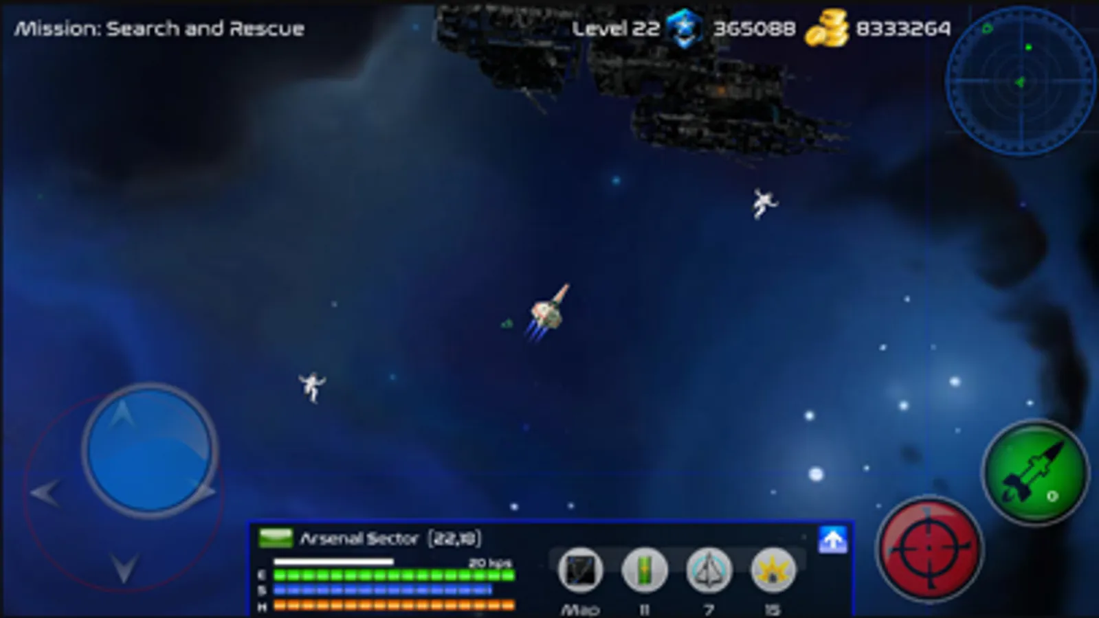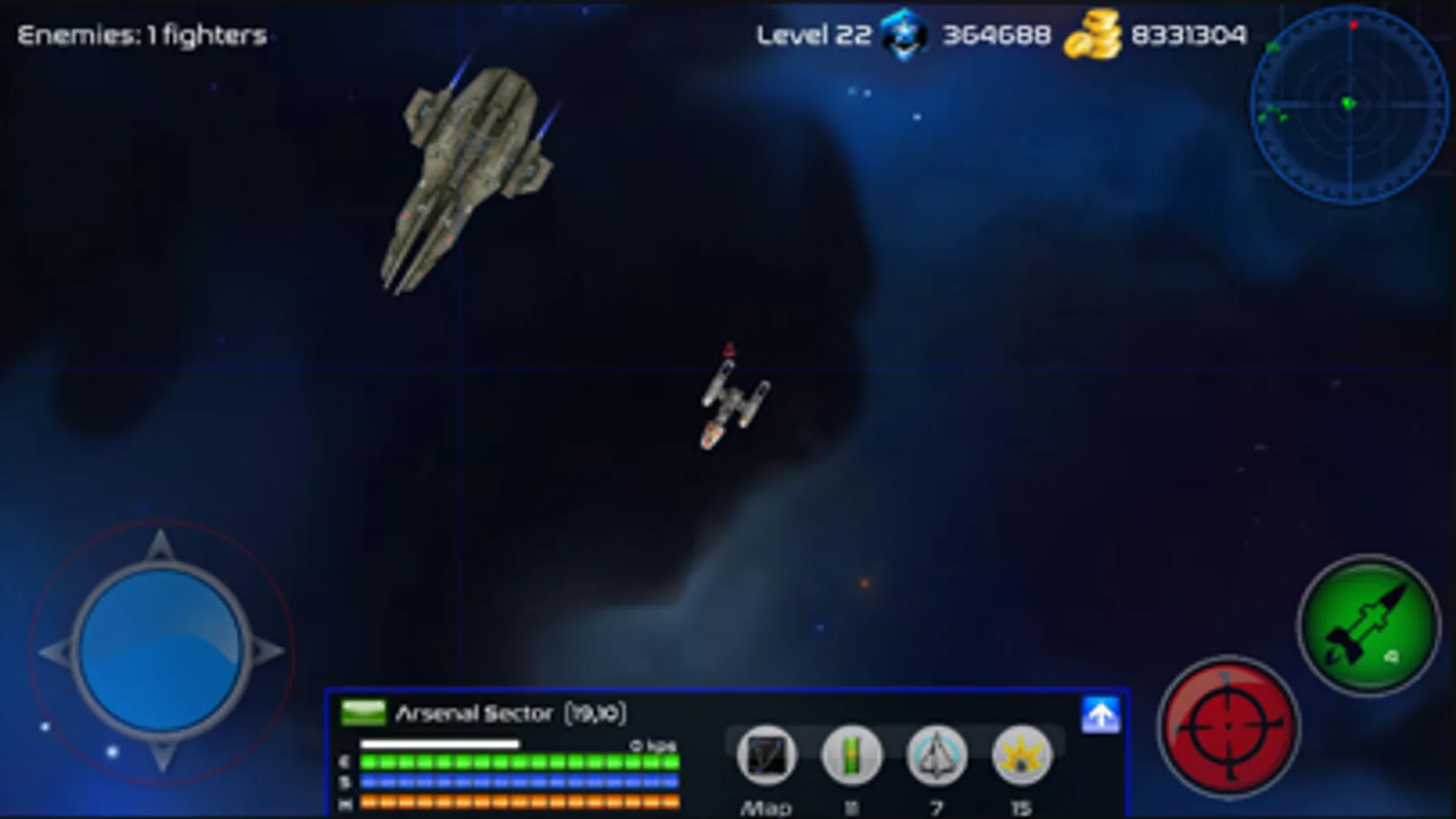 Having escaped the destruction of an invading enemy, you and your space figher have returned to free the galaxy from the invaders. Take the space battle to the enemies and recapture each sector, planet by planet, base by base. The fate of the free galaxy rests on your shoulders. Upgrade your ships, weapons and technology along the way to give yourself an edge over the enemies in space. Make friends with planets and bases while chasing pirates away.