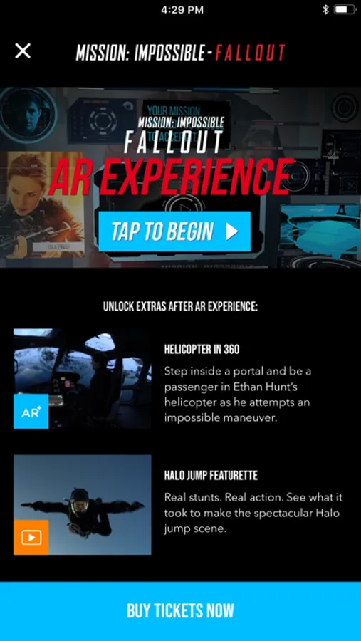 * Play through the AR Experiences to unlock bonus 2D content such as behind-the-scenes footage and cast interviews.