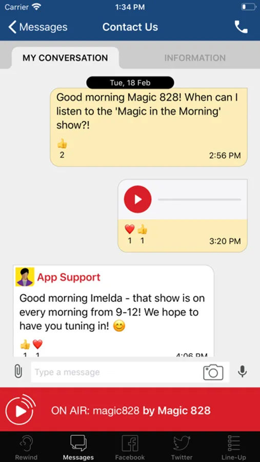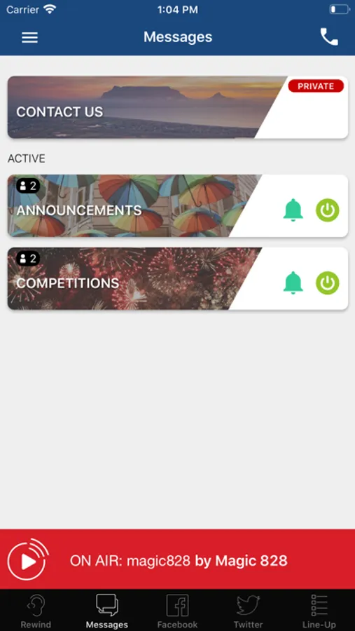 • Private and secure messaging channels with the Magic 828 team and other listeners.