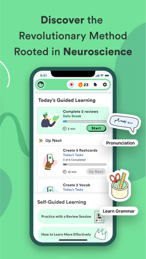 The foundation of our proven method, as detailed in Gabe's bestselling book, is based on the principles of personalized flashcard creation and spaced repetition, extremely powerful learning tools that optimize your brain’s memory abilities. So not only will you learn a language quickly, you’ll never forget it.