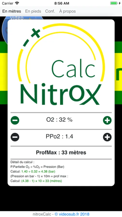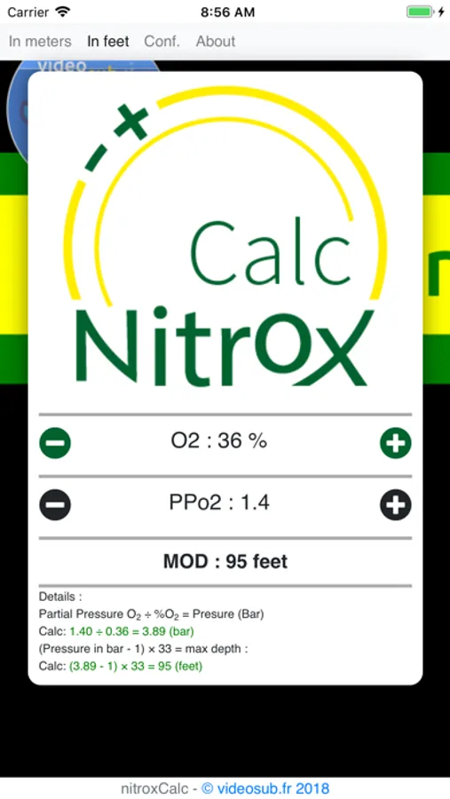 A very simple application for calculating the maximum possible depth with the nitrox you choose