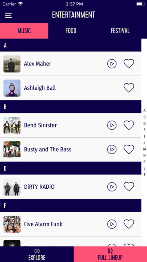Music Player - Enjoy streaming music from the festival’s artists.