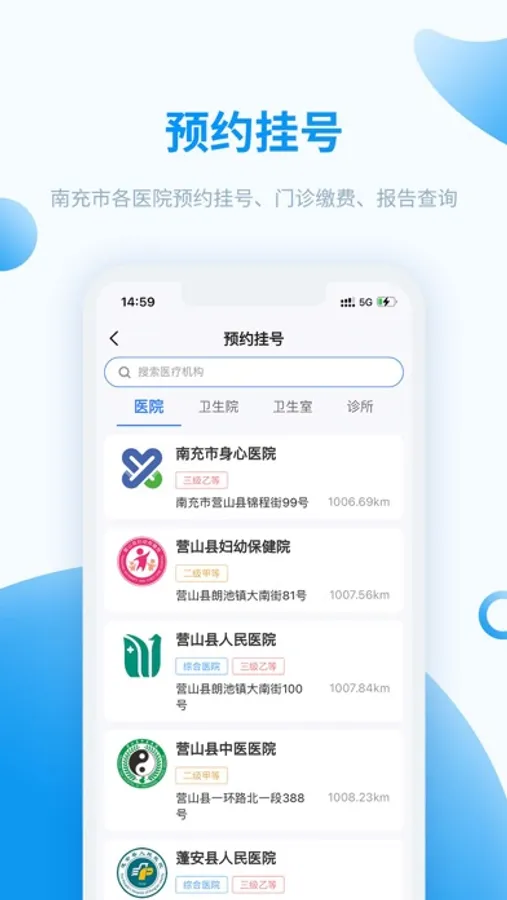 健康南充,是南充市卫生和计划生育信息中心指定的南充就医指导,为患者提供全方位就医服务。通过健康南充,患者使用居民健康卡不仅能够随时随地进行挂号预约、门诊缴费、查看检查检验报告单,还能查询自己的健康档案,与医生紧密联系,查询疾病知识。
